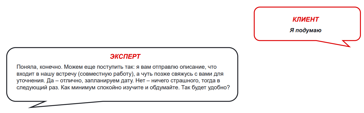 Помните, что «Я подумаю» мы воспринимаем как возражение? Закрыть его можно таким образом: