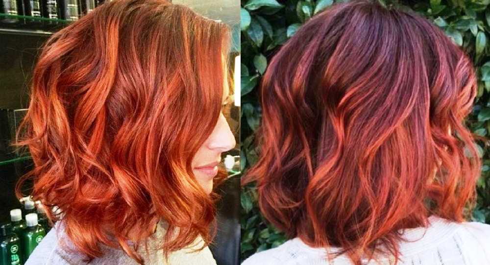 Умело выполненный балаяж на рыжей шевелюре выглядит по-особому привлекательно и ярко, он обладает массой преимуществ: