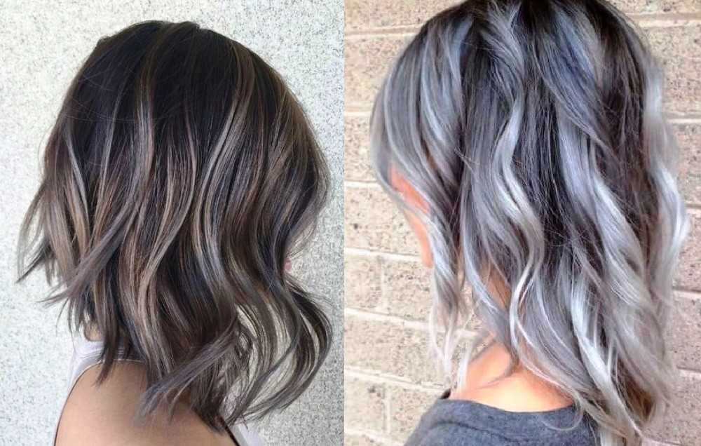 На темно-русых прядях будет смотреться балаяж в серых или графитовых тонах