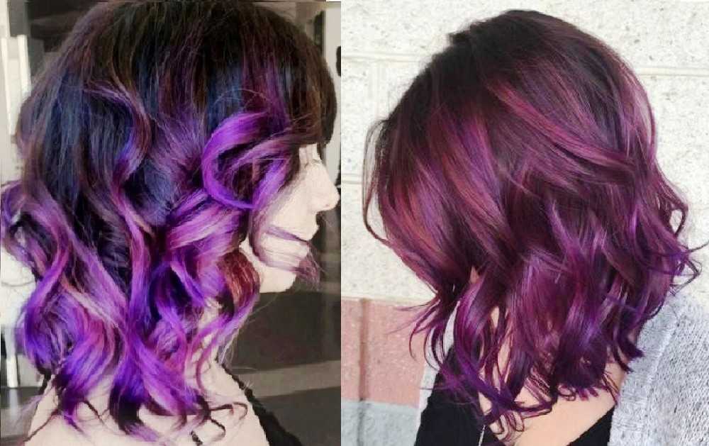 Из ярких и нестандартных оттенков можно выбирать глубокий бордовый или фиолетовый балаяж.