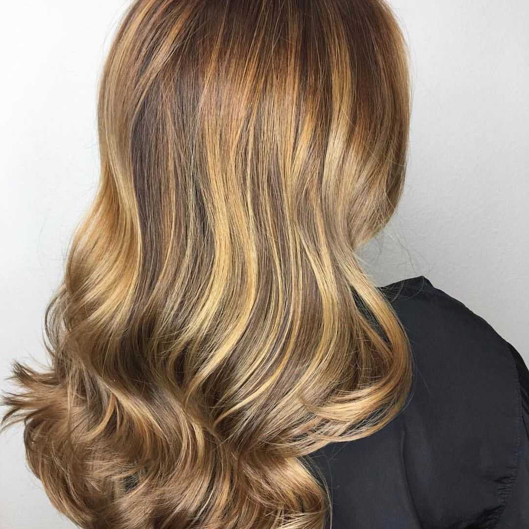 Наиболее удачным этот оттенок окрашивания будет выглядеть на темно-русых волосах с теплым подтоном. Некоторые пряди можно осветлить у корней, а другие — только на кончиках.