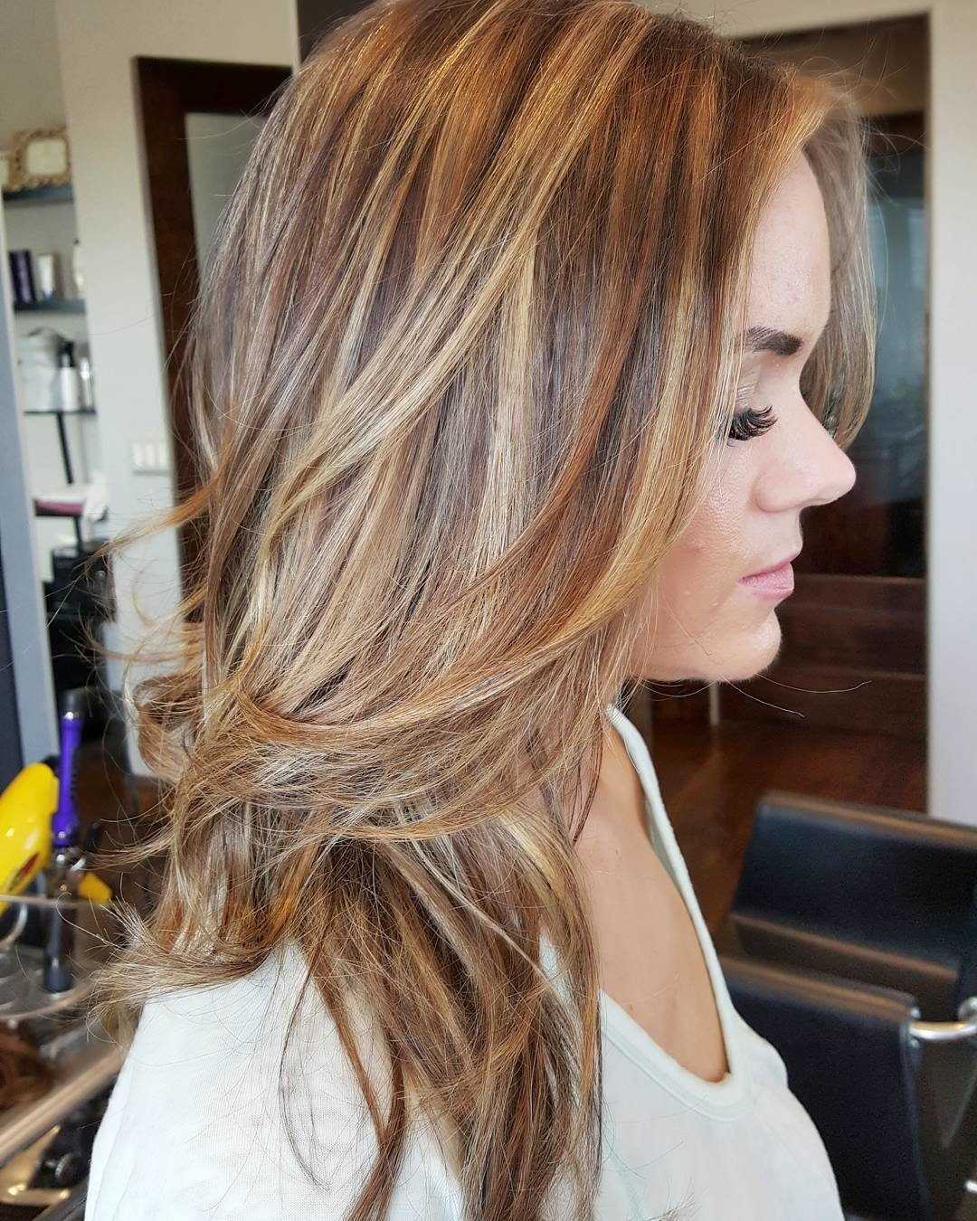 Карамельный — теплый золотистый оттенок, который дополняет многие тона кожи и придает прическе объем и глубину. В сочетании с техникой балаяж карамельные блики могут создать потрясающий многомерный эффект, который выглядит одновременно естественным и ярким.