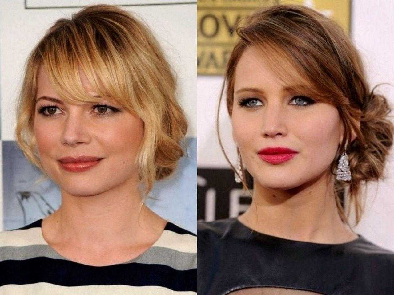 Прически для круглого лица должны выполняться так, чтобы волосы слегка обрамляли скулы и щеки. Скрыть округлость помогут асимметричные линии, для этого можно сделать косую челку или вечернюю прическу с удлинением на одну сторону.