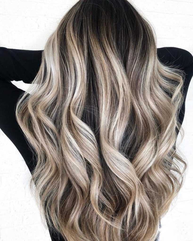 Как это будет выглядеть – светлые пряди-прожилки по всей / почти всей длине волос. У корней – примерно такие же светлые, как на концах.
