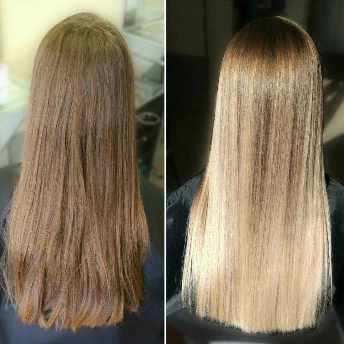 Важно! Обязательно сообщите специалисту по наращиванию, что ваши волосы подверглись кератиновому выпрямлению. Это поможет ему выбрать клеевой состав, не конфликтующий с составом кератина.. Мелированные – волосы становятся более равномерными и гладкими, без торчащих осветленных пёрышек