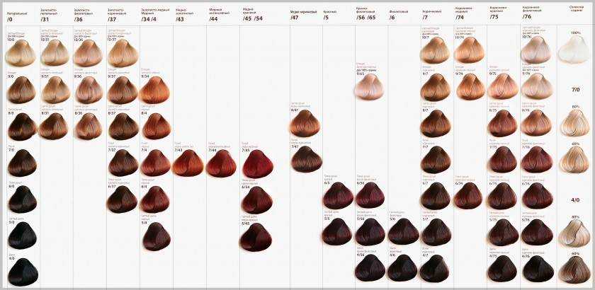 Наверху находятся оттенки посветлее, внизу – более темные. Производитель предоставляет большой выбор, как краски для волос холодных оттенков, так и теплых.