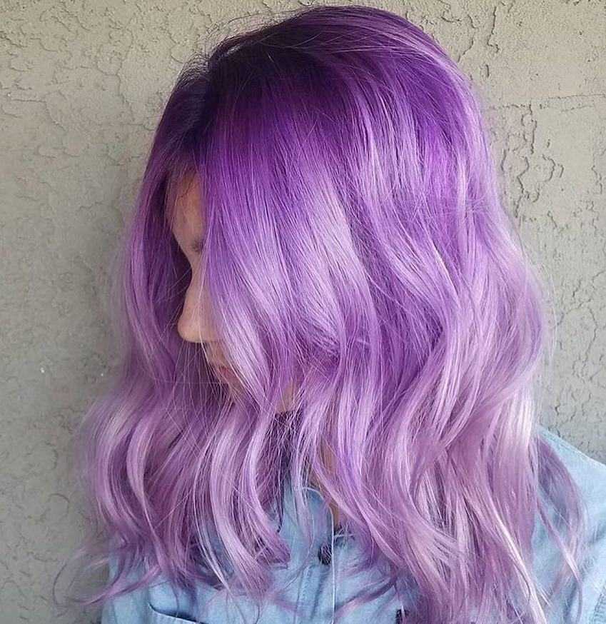 В результате получается плавный переход от естественного в сиреневый цвет волос.