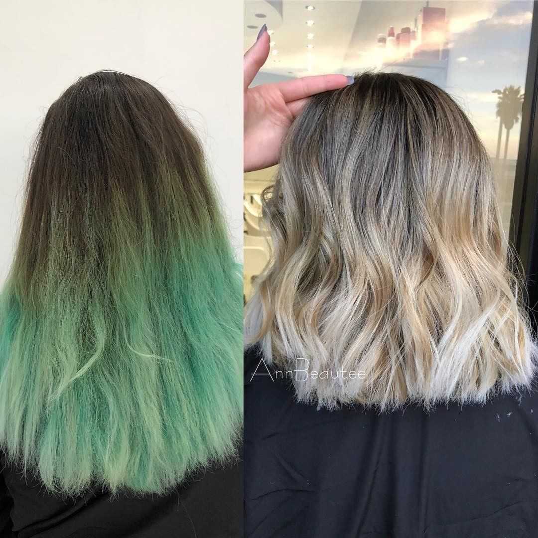 Однако идеального оттенка вы все равно не добьетесь, поэтому лучше всего пользоваться профессиональными средствами или же записаться к колористу, который не только нейтрализует зеленый цвет, но и сделает тонирование и позаботится о волосах.