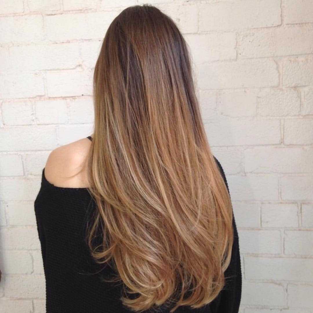 Профессионалы используют многоэтапное покрытие волос от светлой основы к светло-карамельному колеру.