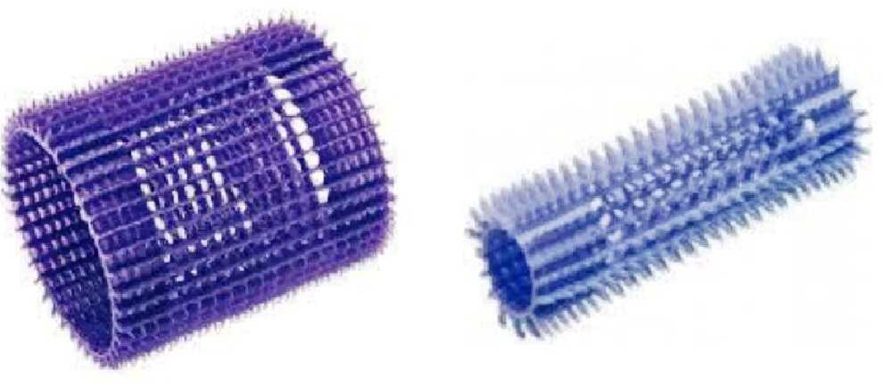 Минусом классических коклюшек является их крепление – резинка. Зажатие пряди резинкой дает перегиб (излом) локона, что несколько ухудшает его форму. Альтернатива – американские бигуди без резинок. Они представляют собой полые внутри цилиндры разных диаметров. Крепление прядей осуществляется посредством специальных палочек, вставляющихся в центр, что исключает перегиб.