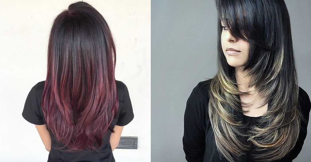 Модное колорирование на черные волосы 2023 фото до и после