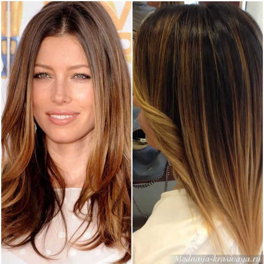 Не обязательно осветлять большую половины длинных волос, чтобы получился такой результат. Натуральнее и привлекательнее выглядит сочетание балаяжа и омбре.