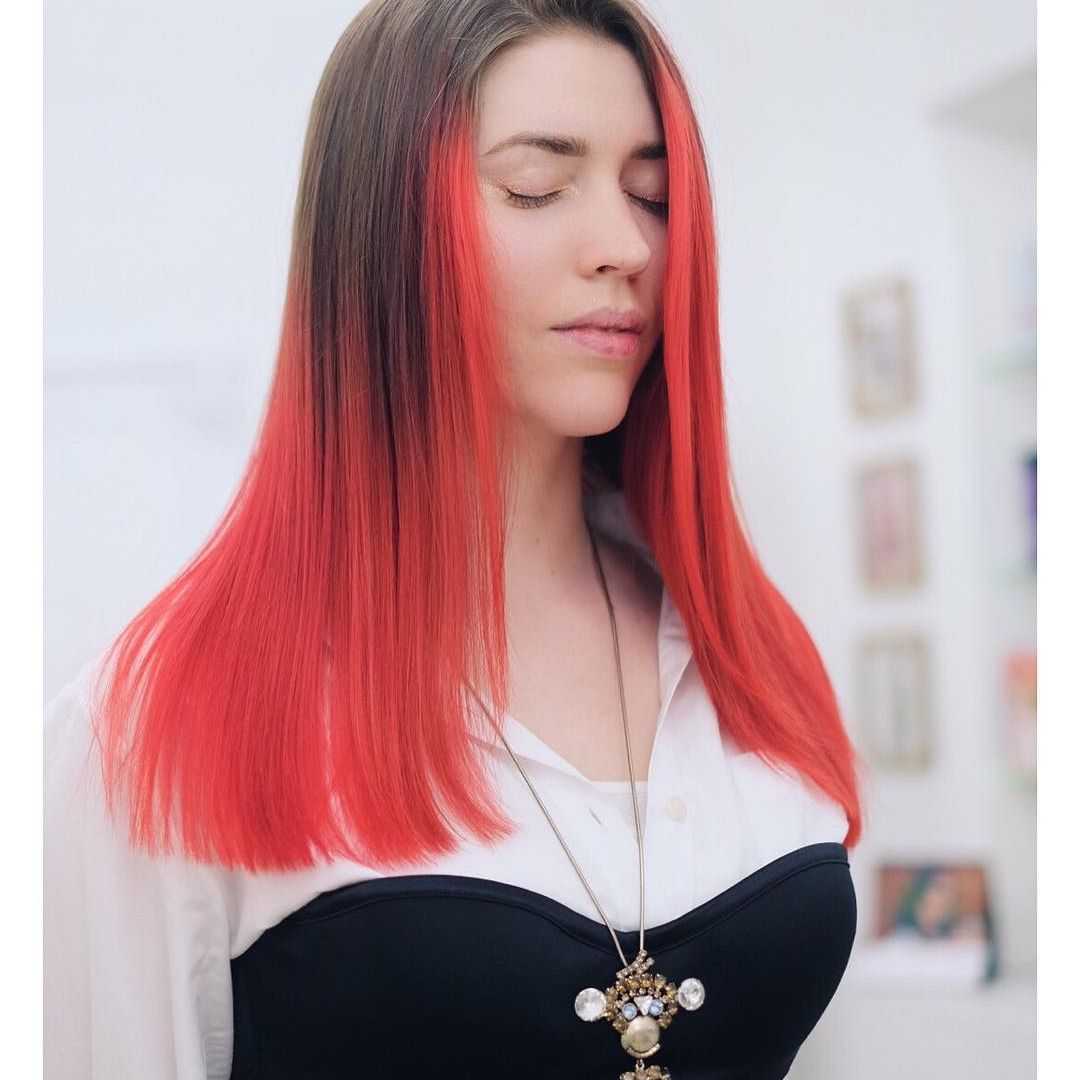 Красный цвет имеет так много оттенков, что подойдет практически каждому цветотипу и длине волос — от коротких, до длинных. Лучше всего красные кончики будут смотреться на темных волосах: черных и темно-коричневых. Если ваши волосы уже целиком покрашены в красный, то и балаяж в красных оттенках вам определенно показан. Огненные кончики на светлых волосах или даже блонде — выбор неочевидный, но при этом интересный. Так что дерзайте! Единственное серьезное противопоказание для красного окрашивания — выраженный розовый подтон кожи или перманентные воспаления
