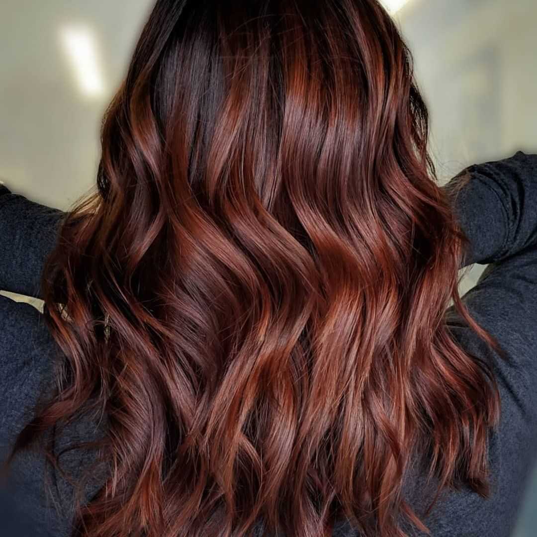 Подобное притягивает подобное: каштановым волосам (помните, что такое каштан?) балаяж в оттенках красного дерева будет подходить лучше всего.