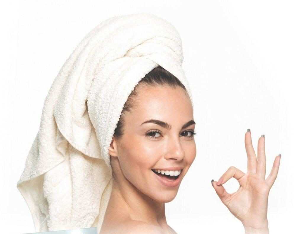 Далее берем полотенце из микрофибры или хлопковую ткань и кладем волосы, чтобы также сохранялись завитки. Полотенце сворачиваем в виде гульки и фиксируем резинкой. Оставляем на 20-30 минут.