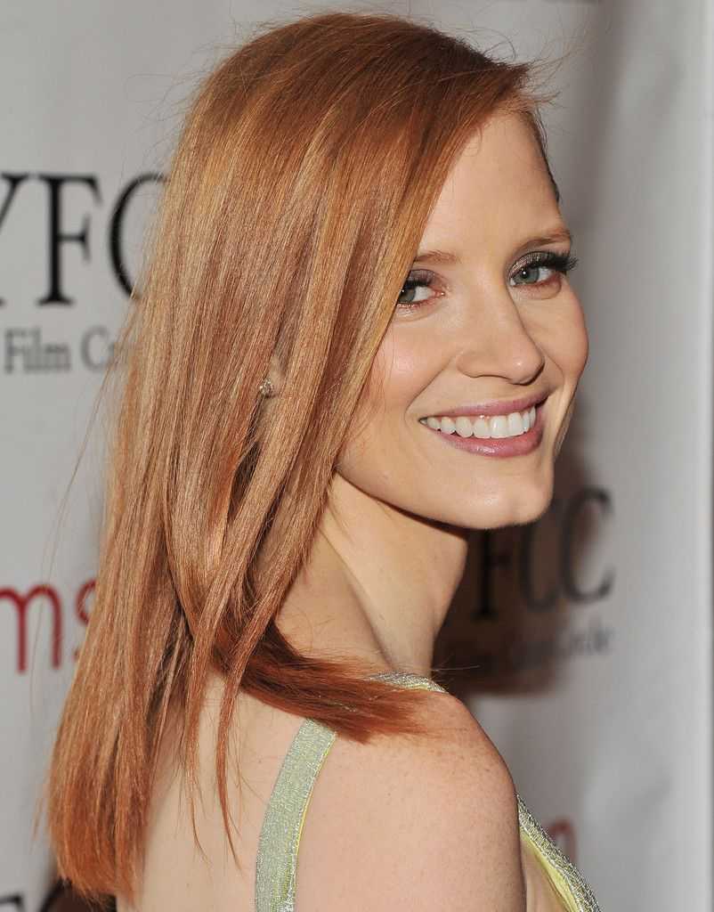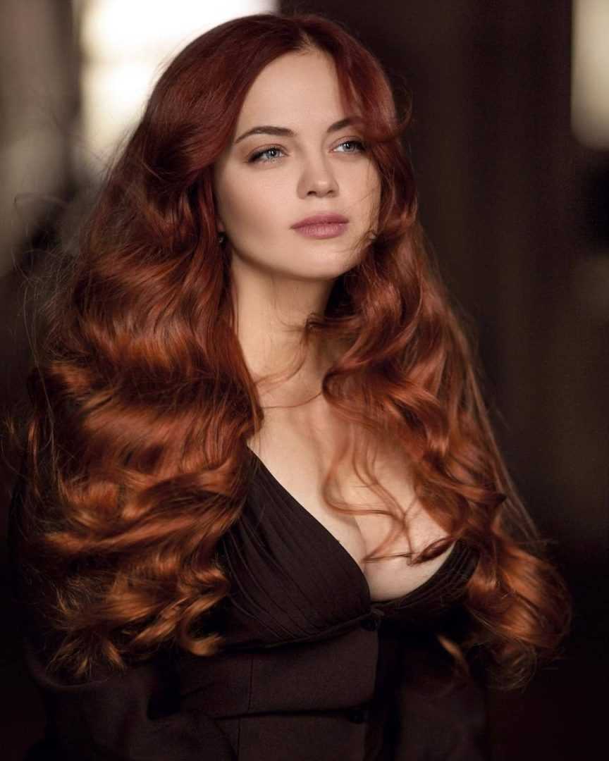 - Коричнево – медный цвет волос в зависимости от интенсивности можно спутать с шатеном.