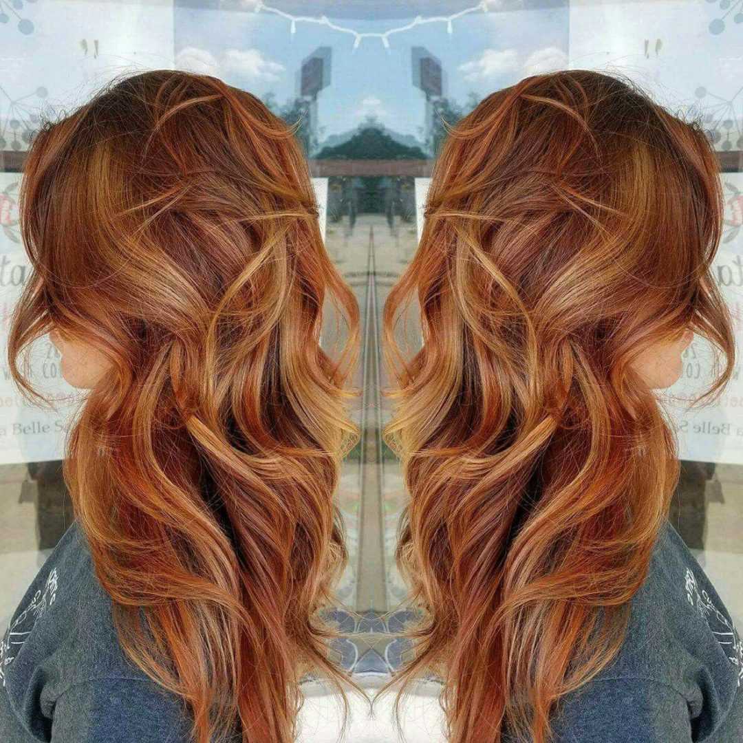- Еще одна техника, просто созданная для медного бликования — венецианское мелирование. Этот способ позволяет окрашиванием всего нескольких прядей в интенсивный медный добиться живой игры оттенков на волосах. А компанию медному тону в нем составят менее «огненные», но очень теплые медовый, карамельный или коньячный.
