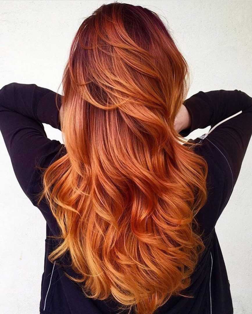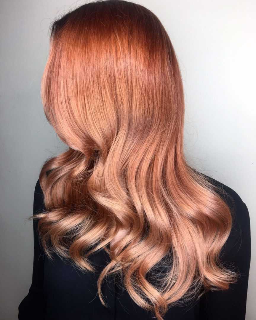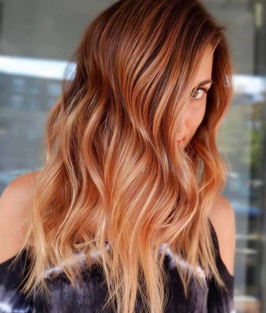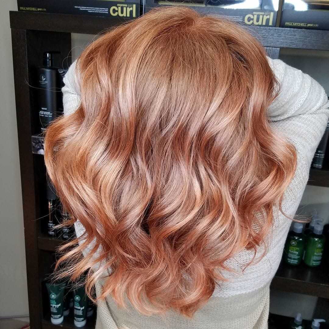 Медно рыжий очень схож с предыдущим вариантом, но выглядит не так ярко. Подойдет к коже светлого, золотистого и персикового оттенка и темным от природы прядям.