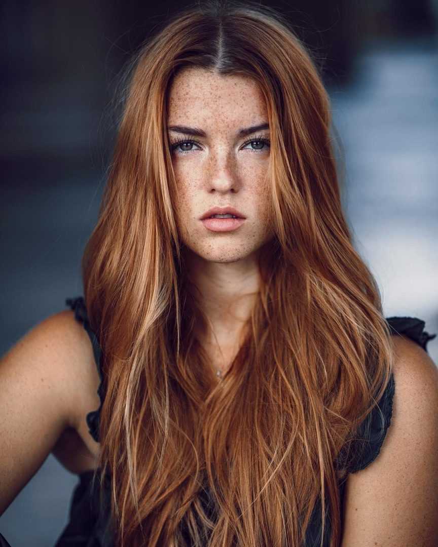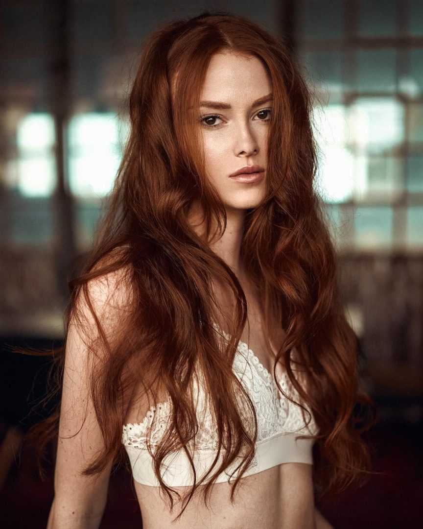 Тон чисто меди, без единого вкрапления русого или каштанового тонов, делает образ ярким и эксцентричным, что привлекает внимание окружающих и выделяет девушку из толпы. Медный рыжий окрас подобен предыдущему варианту, но не до такой степени яркий
