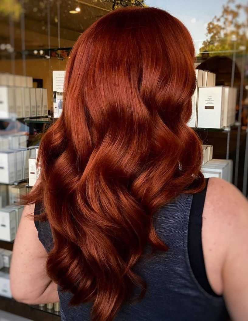 Самый настоящий медный оттенок, который можно считать прародителем всех остальных, наилучшим образом украсит девушек, чью внешность можно отнести к «осеннему» цветотипу. Он придает образу строгость и лаконичность, при этом не сковывая характерную открытость и страсть его обладательниц. Также этот оттенок визуально делает волосы более густыми и пышными.