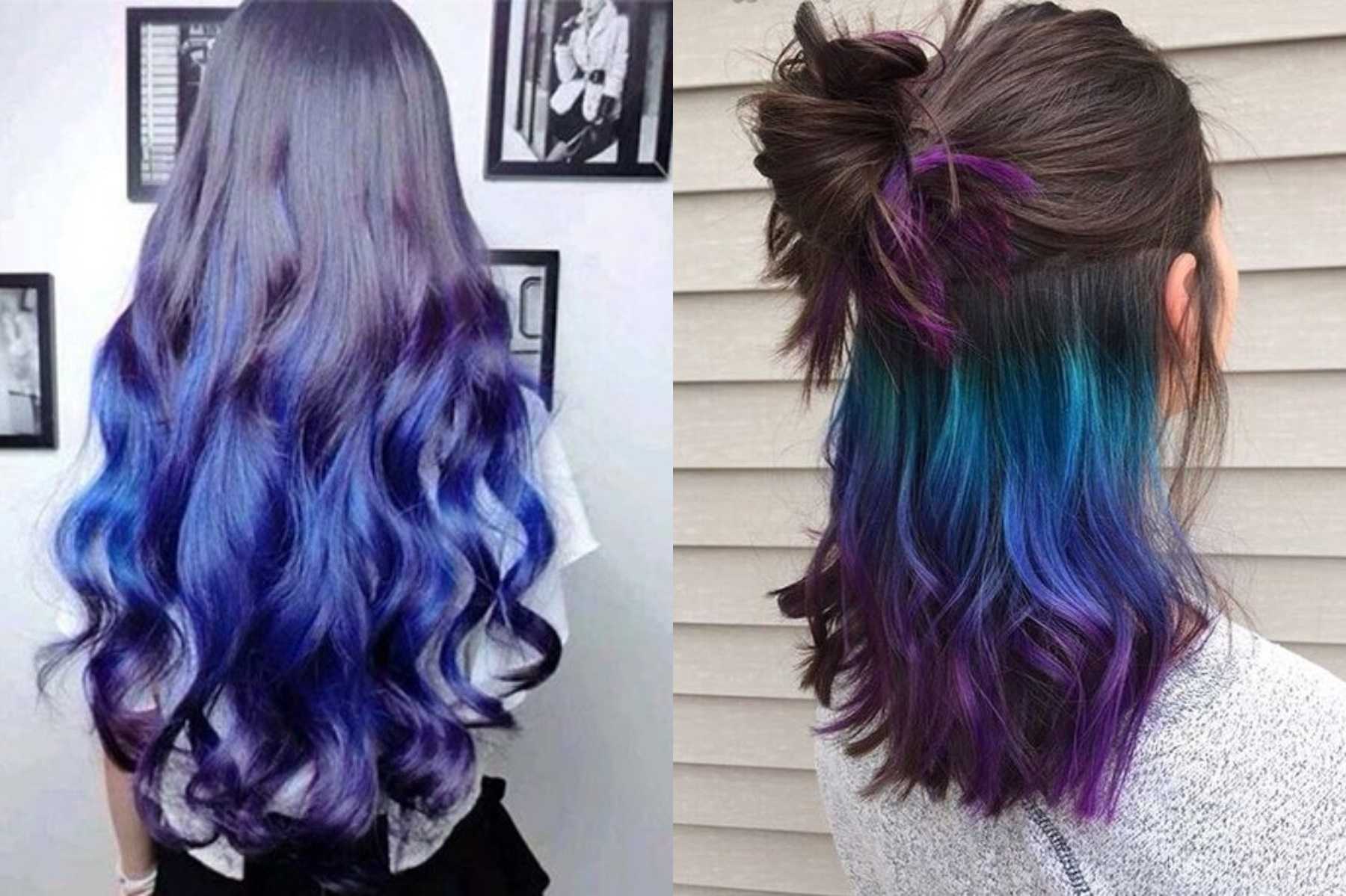- Яркие разноцветные волосы. Сочетание двух или более цветных тонов на пике популярности.