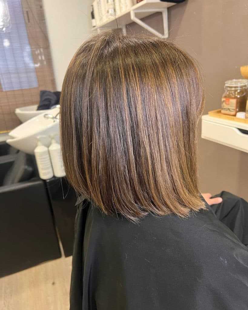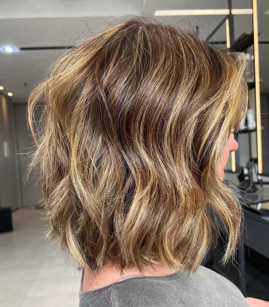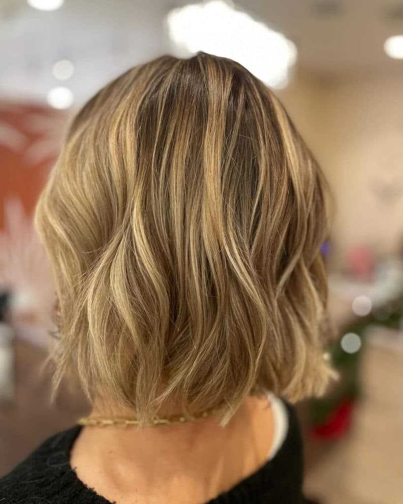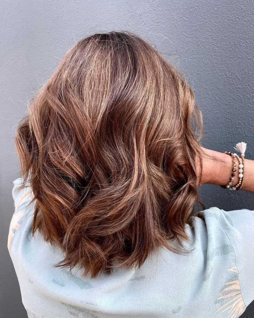 Еще один трендовый цвет волос на 2023 год – это коричневый балаяж, где корни остаются темными. Для блондинок с волосами средней длины можно использовать комбинацию мягких тонов с карамелью.