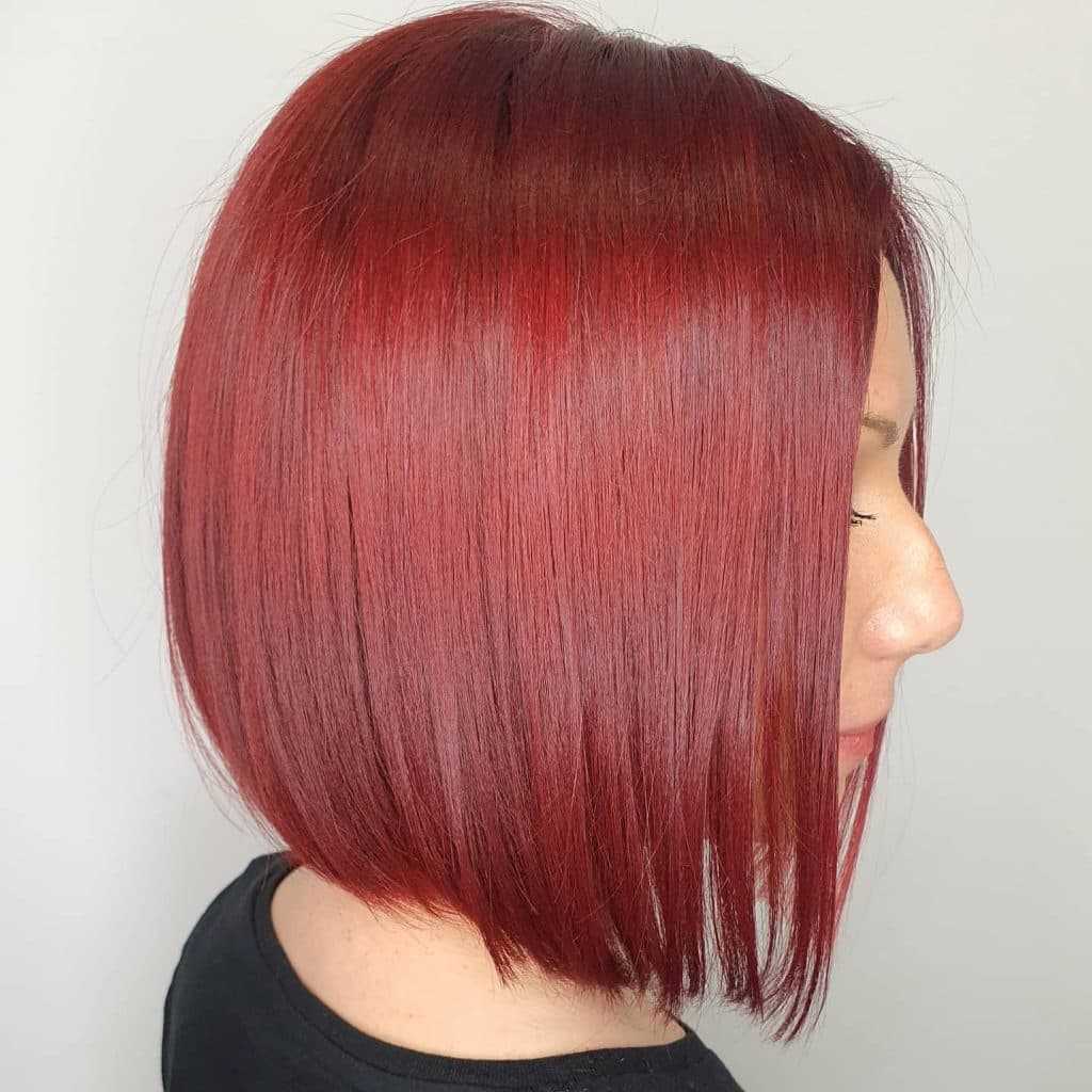 Если вы смелы, не боитесь заявить о себе этому миру, выбирайте рубиновый оттенок волос. Он прекрасно смотрится на средней длине. Единственное ограничение по его применению, это наличие мелких прыщиков, раздражений на лице, которые этот оттенок будет подчеркивать. В остальных случаях такое окрашивание будет смотреться очень красиво, особенно на девушках со смуглой кожей и зелеными, карими глазами.