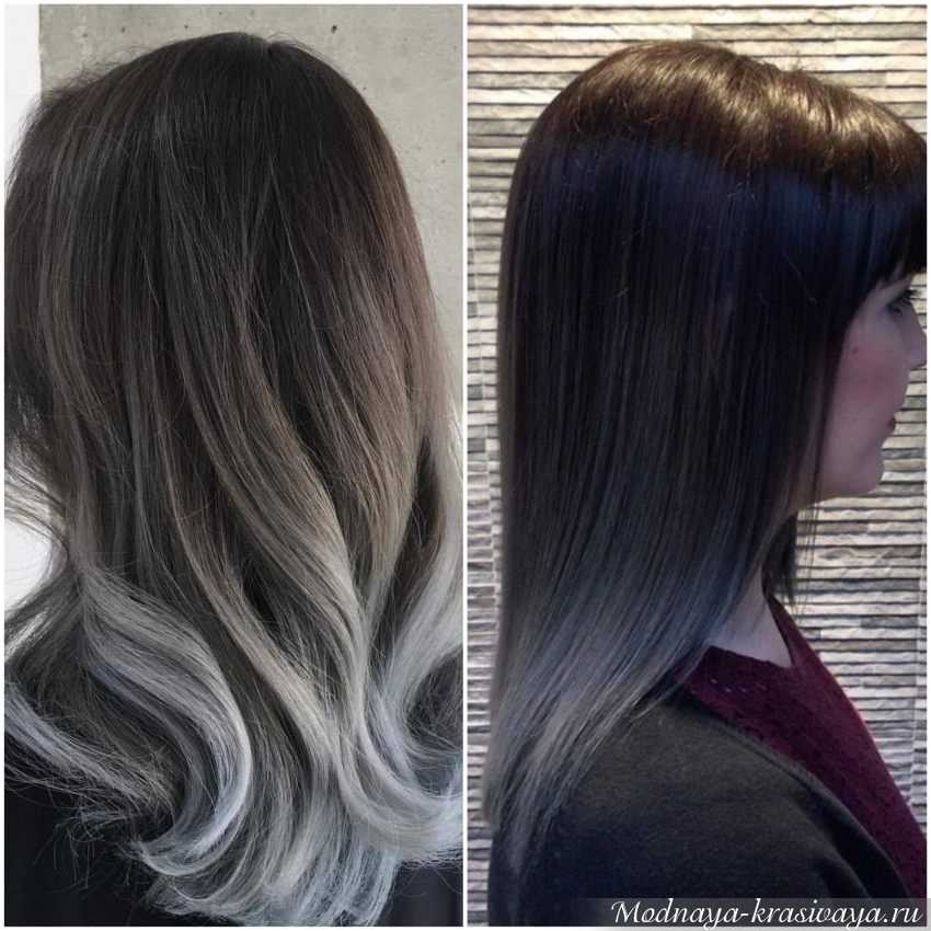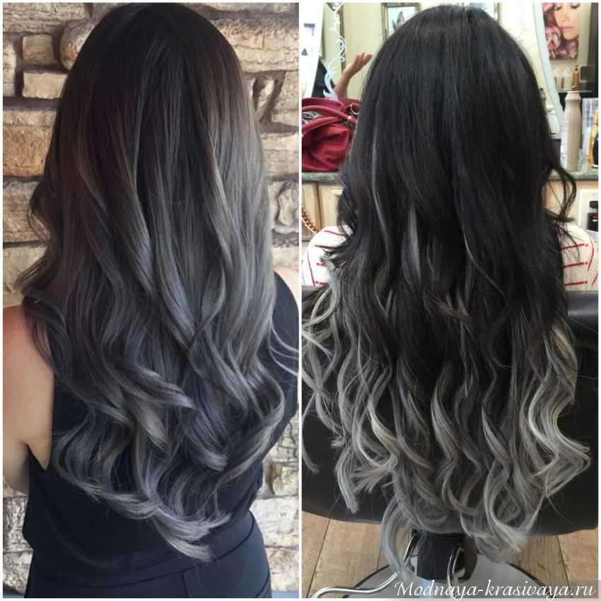 Большой спрос в парикмахерских – на серое омбре на черных волосах. Смотрится экстравагантно и необычно, особенно на юных моделях – выполненное в холодной гамме, создает впечатление седины. И если в случае с молодыми девушками этот контраст возраста и цвета привлекает и манит, то в старшей возрастной группе по той же причине выглядит неуместным и странным
