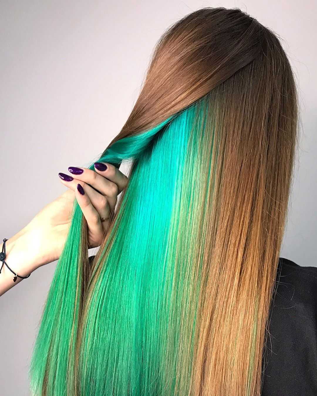 Зеленый в сочетании с синим и голубым дает тот самый эффект волос русалки. Особенно, если волосы не короткие.