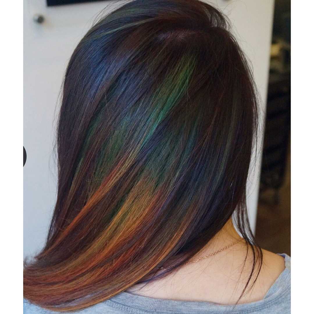 Красиво будут выглядеть цвета, соответствующие цветотипу основного полотна волос: при темно-каштановой базе подойдет рыжий, ореховый и медовый, а также насыщенный красный. Обладатльницы холодных иссиня-черных волос обязаны удивить окружающих сочетанием черного и глубокого синего или холодного сиреневого.