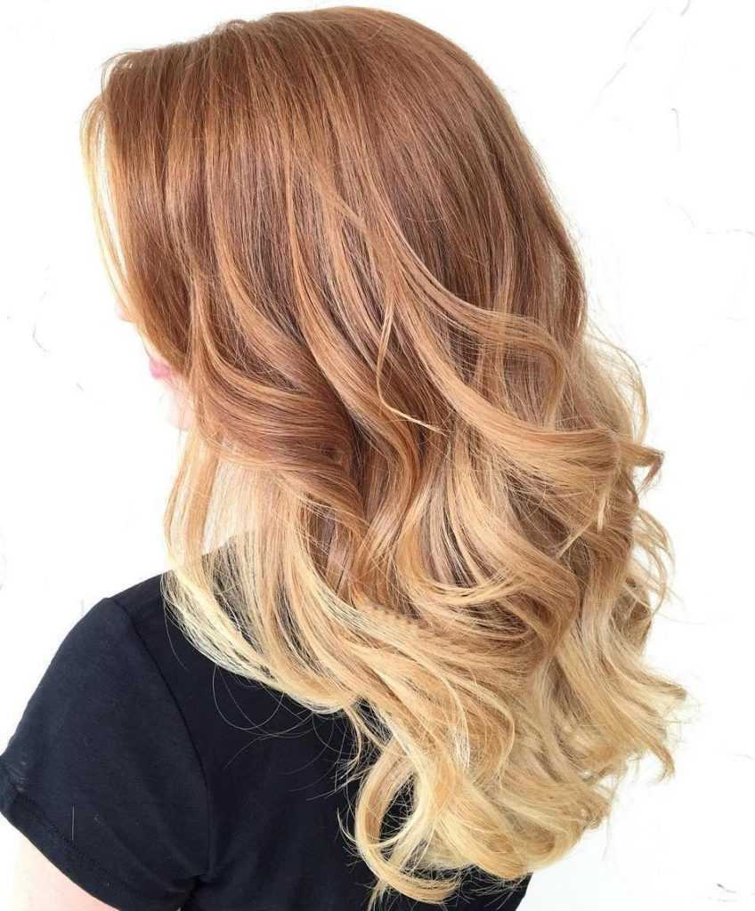 - Балаяж. Отлично подходит кудрявым и вьющимся прядям. Балаяж позволяет грамотно подчеркнуть их красоту. Даже если эта техника используется для прямых волос, их потом завивают, так что это беспроигрышный вариант.