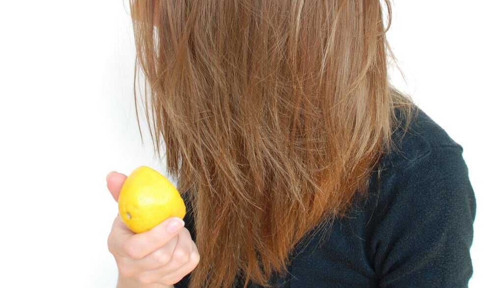 - Лимон. Не одно десятилетие используют этот фрукт для обесцвечивания локонов в домашних условиях. Эффективен его сок для светлых тонов, но можно применять и для черного цвета. Под воздействием солнца лимонная кислота оживляется и открывает фолликул волоса для очистки пигмента. Поскольку сок лимона пересушивает волосы, после его применения нужно пользоваться кондиционером. Чтобы добиться желаемого эффекта, маски делаются 3 раза в неделю.