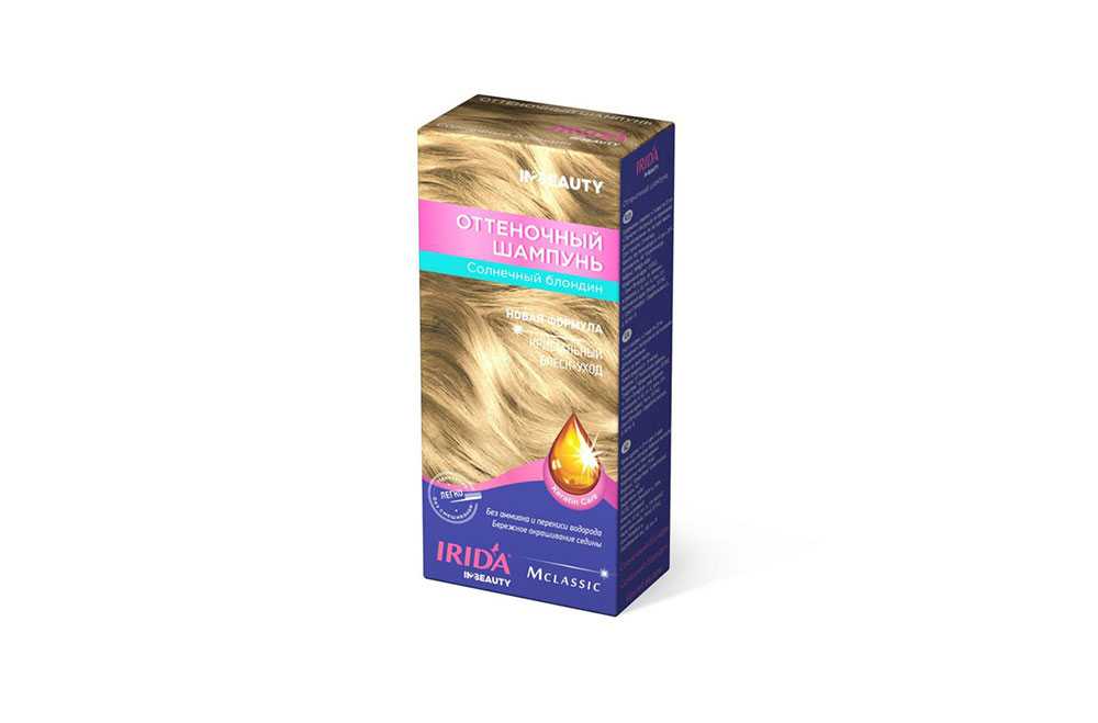 Ирида – продукт среднего класса, не вредит волосам и дает возможность экспериментировать с различными оттенками. Шампунь полностью смывается через 12-15 процедур мытья волос.