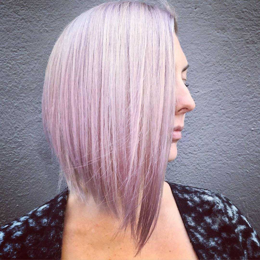 Сначала волосы обесцвечивают специальной блондирующей пудрой и тонируют в холодный пепельный оттенок. Если не обесцветить пряди до достаточно светлого уровня, естественный пигмент (желтый или рыжеватый) смешается с красителем и приведет к грязноватому оттенку.