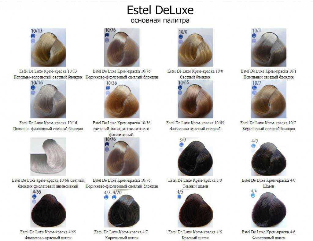 Краска Эстель De Luxe является самой популярной серией. Палитра включает 40 цветов. Большую их часть составляют базовые оттенки, способные окрасить волосы в прекрасные тона, а также скрыть седину. Десять тонов служат корректорами, которые способны улучшить интенсивность окраски и нейтрализовать неудачный оттенок.