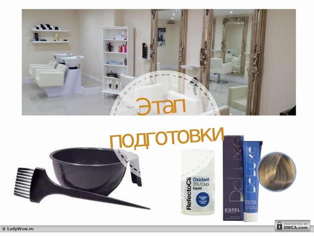Как и перед любой покраской волос уши, шею и контур лица необходимо смазать кремом. Далее предварительно очищенные волосы, распределить на участки для большего удобства.