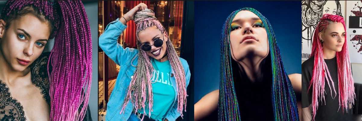 Это самый распространенный вид плетения, который легко спутать с завивкой. Основной плюс –, временные затраты. Уходит от 4 до 6 часов на формирование до полутысячи кос. Техника заключается в наплетении заготовок из искусственных косичек, длинна которых подбирается по желанию заказчика.