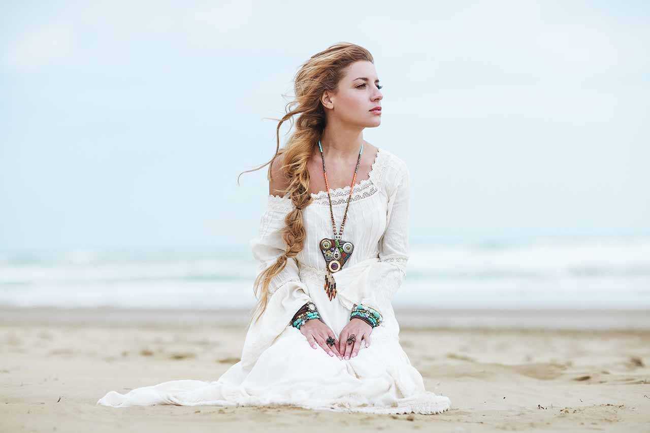 Стиль бохо очень женственный и, если можно так выразиться, естественный: никаких жестких корсетов, неудобных узких платьев, шпилек и декольте. То же касается и укладки: прически в стиле бохо — это прически, которые выглядят нарочито небрежно и натурально, ставка сделана на очаровательное плетение, чуть выбившиеся прядки, мягкие волны и пляжные локоны.