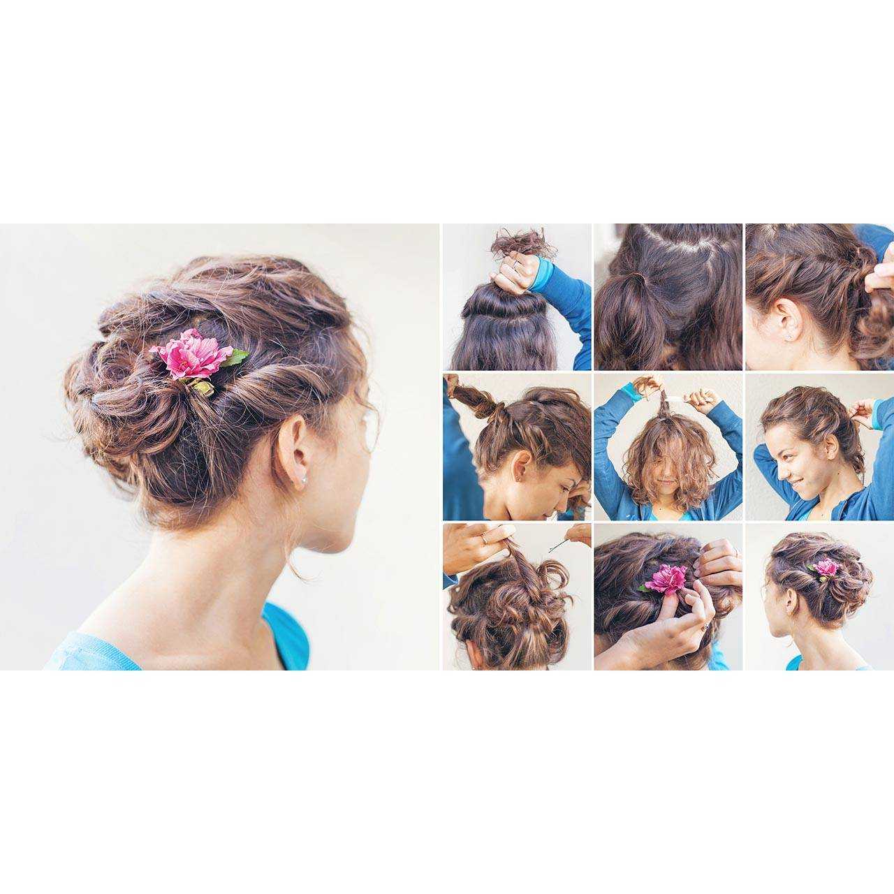 Прическа с пучком на средние волосы: пошаговое фото