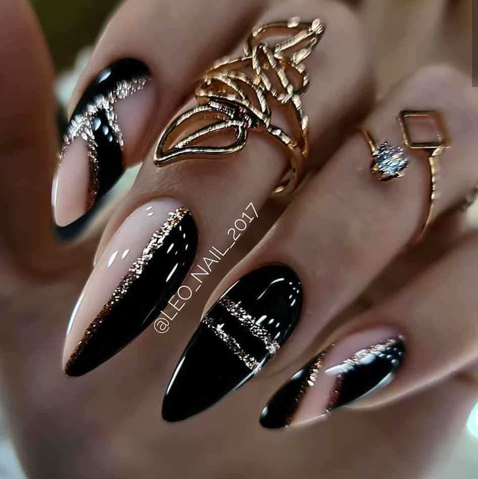 Невероятно популярное решение, которое должно быть исполнено максимально аккуратно. Черный подчеркнет все неровности и огрехи формы. Кутикула и пластина должны быть идеально обработаны.