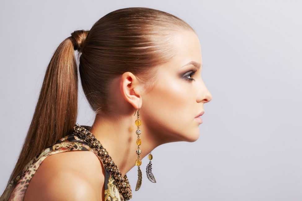 Стоит выпустить пару прядей у лица. Сам хвост можно оставить без украшений для большей лаконичности или, наоборот, дополнить его лентами, заколками или стразами. Для вечернего выхода под такую прическу подбирают крупные серьги, которые станут завершением сета и объединят все составляющие элементы в общий вид.