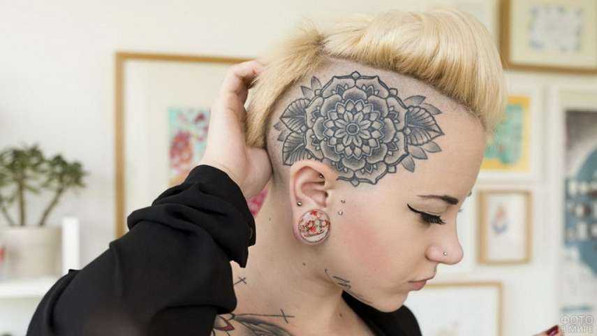 Еще одно необычное решение — татуировка на затылке, которую не спрятать под коротко подстриженными волосами. Цветная или черно-белая, она в любом случае будет привлекать взгляды окружающих.