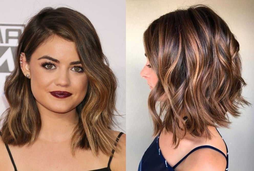 Если у вас темные, шатеновые, каштановые прямые локоны, добавьте к ним небольшие светлые блики-прядки, карамельных или медовых оттенков. Такой трюк придаст еще большую «длину» круглому лицу.