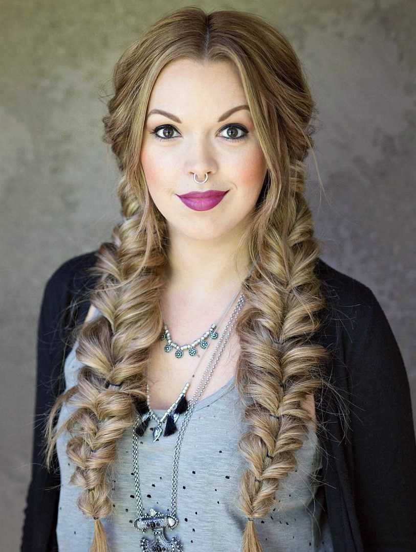 Эту великолепную прическу просто необходимо сделать хотя бы раз в этом сезоне. Двойной рыбий хвост очень прост в укладке, однако он не уступает ни одной другой вариации в стиле.
