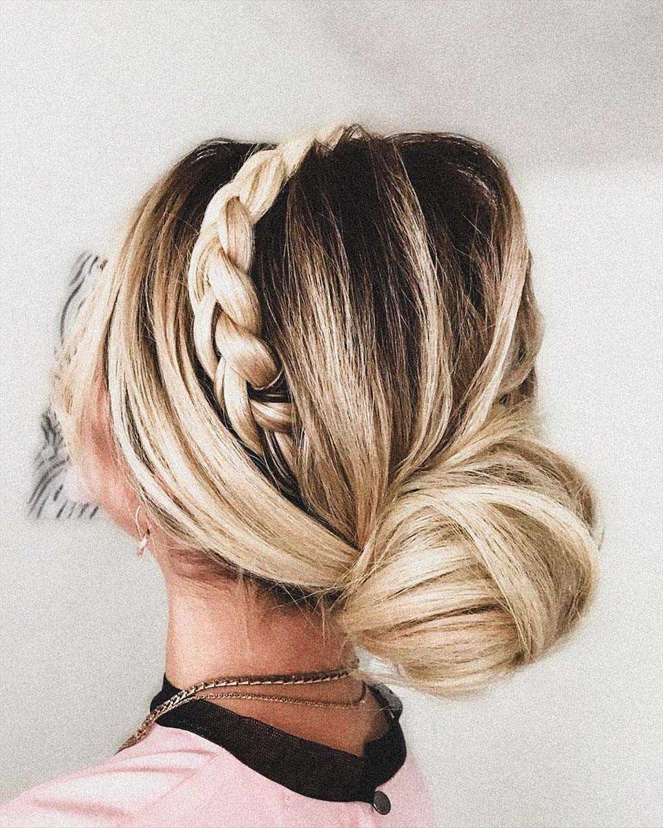 Из длинных волос получится выполнить разные вариации круговых кос. Для обладателей шевелюры средней длины удачнее частичное плетение. Можно попробовать водопад или ободок из волос с гулькой. Полное плетение выполняют по кругу. Рекомендуется попробовать вариант из хвоста.