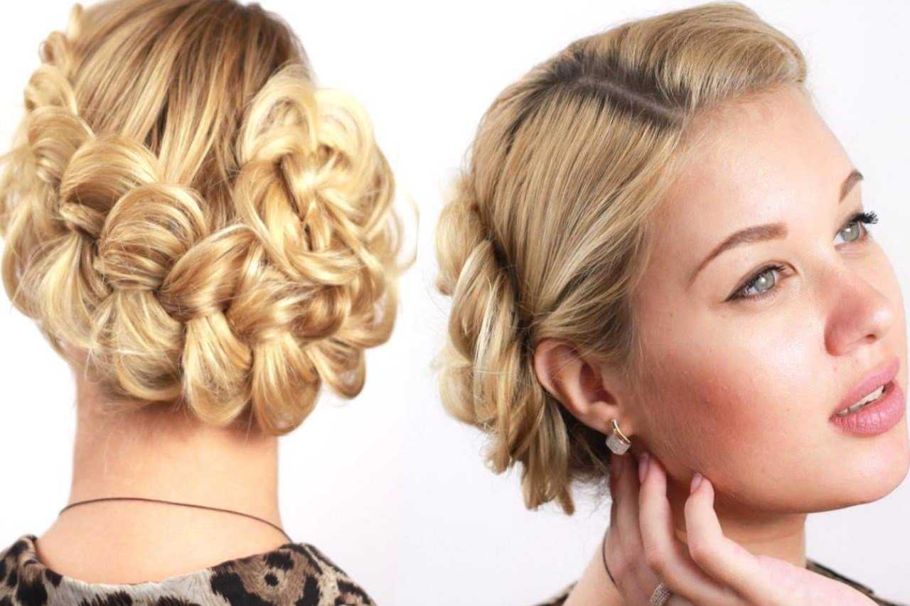 Хотите примерить образ утонченной дамы? Желание осуществимо, даже если у вас нет локонов до талии. Эта прическа с косами на короткие волосы создает полную иллюзию шелковистой гривы, скромно спрятанной под аккуратным узлом. Фото-инструкция достаточно наглядна.