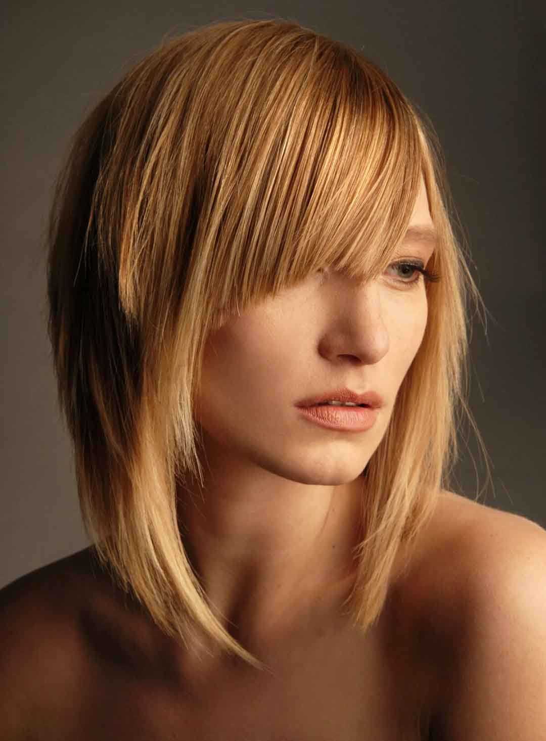 Прическа с косой челкой отлично смотрится на обладательницах прямоугольного и квадратного лица. Он также подходит женщинам с круглым и овальным лицом. Такая лесенка выглядит более гармонично, ровно и добавляет образу женственности. А филированные челки, доходящие до середины ушей, придают образу дополнительную сексуальность.