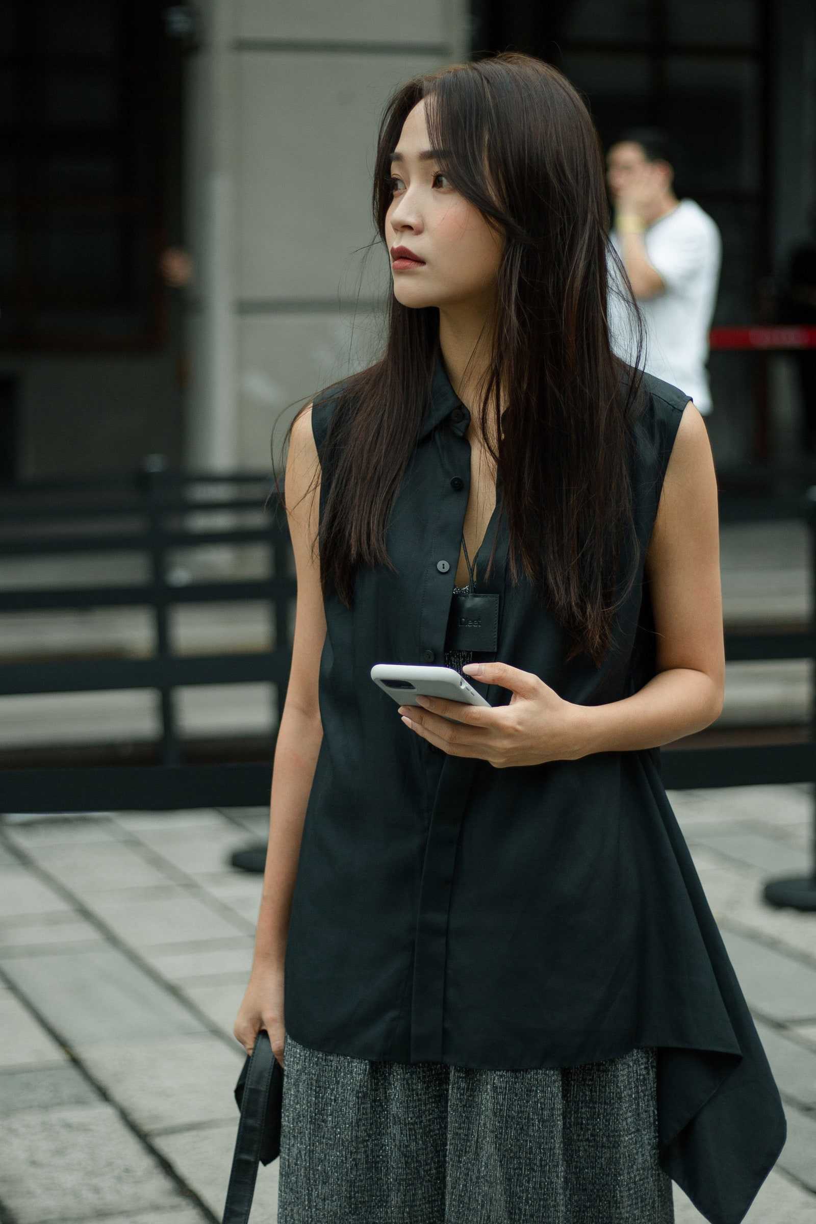 Здесь мы видим, как уникально выглядит такой стиль. Прямая чёлка утяжеляет дерзкую стрижку, и это выбор тех, кто твёрдо намерен прятать лоб.