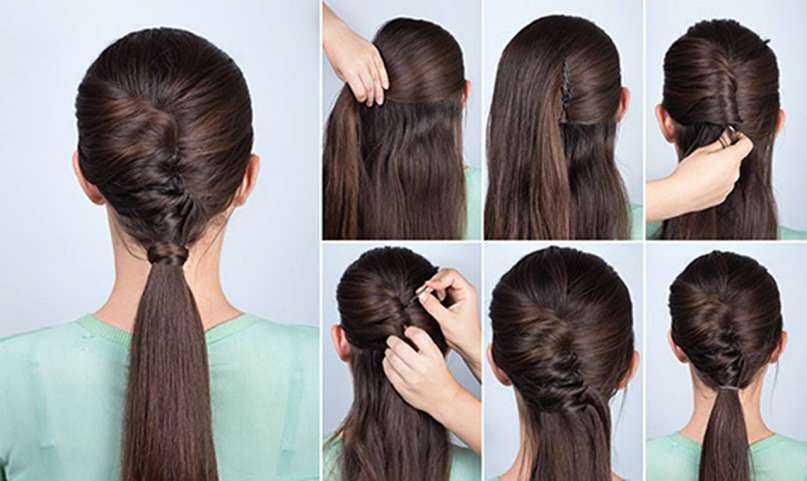 Такую причёску делают по примеру ракушки, но чтобы это выглядело на отлично, то желательно сделать завивку. Соберите хвост под резинку и разделите его пополам у основания и проденьте волосы в отверстие, получится ракушка, которую надо зафиксировать невидимками.