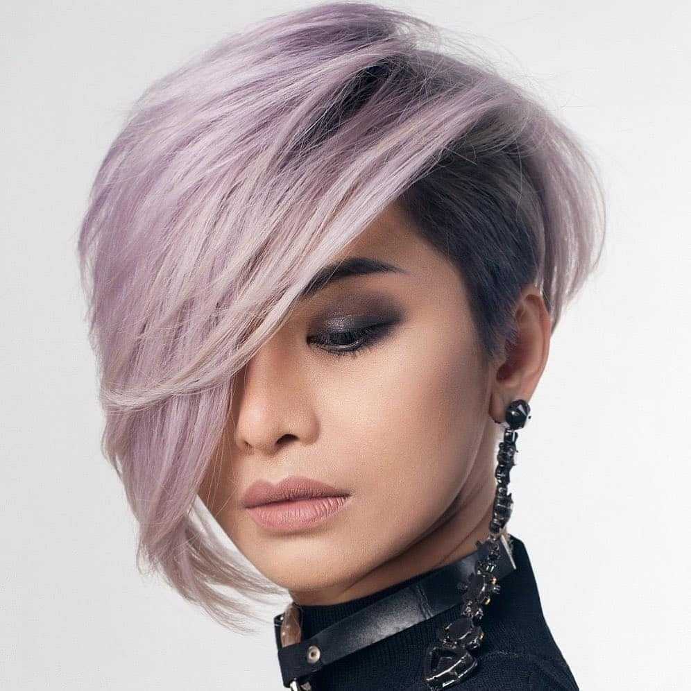 Индивидуальность можно продемонстрировать при помощи ассиметричной короткой стрижки. Для придания желаемого направления надо использовать сильные фиксирующие средства.